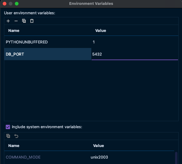일단 시험삼아 DB_PORT만 넣어놨는데 이외에 필요한 변수들을 설정해주면 된다.