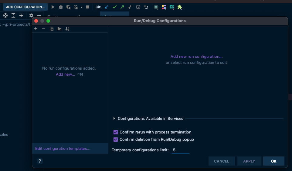 아직 추가한게 없다면 Add Configuration이라고 되어있는게 보일텐데 이걸 클릭하자.
