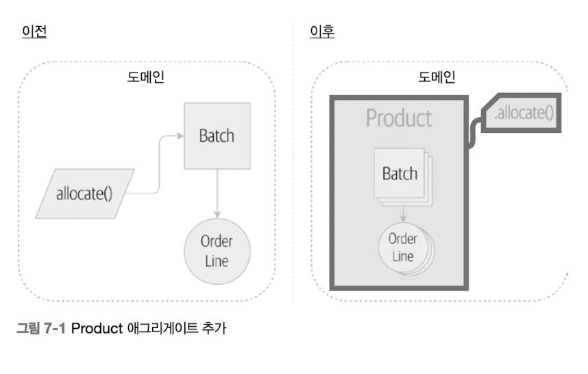 - 주문 라인 할당시 세계에 있는 모든 Batch 객체를 살펴보고 이들을 allocate() 도메인 서비스에 전달