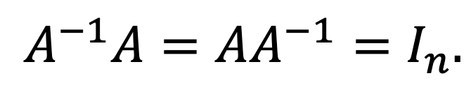 - 어떤 행렬에 왼쪽이나 오른쪽에 곱하면 항등행렬이 나오는게 역행렬
