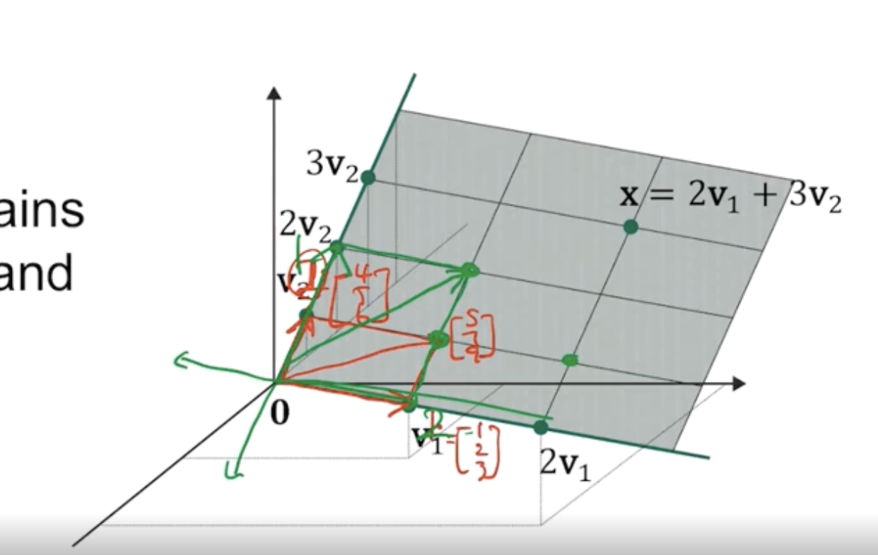 s1v1 + s2v2의 값은 여전히 3차원 벡터가 된다.